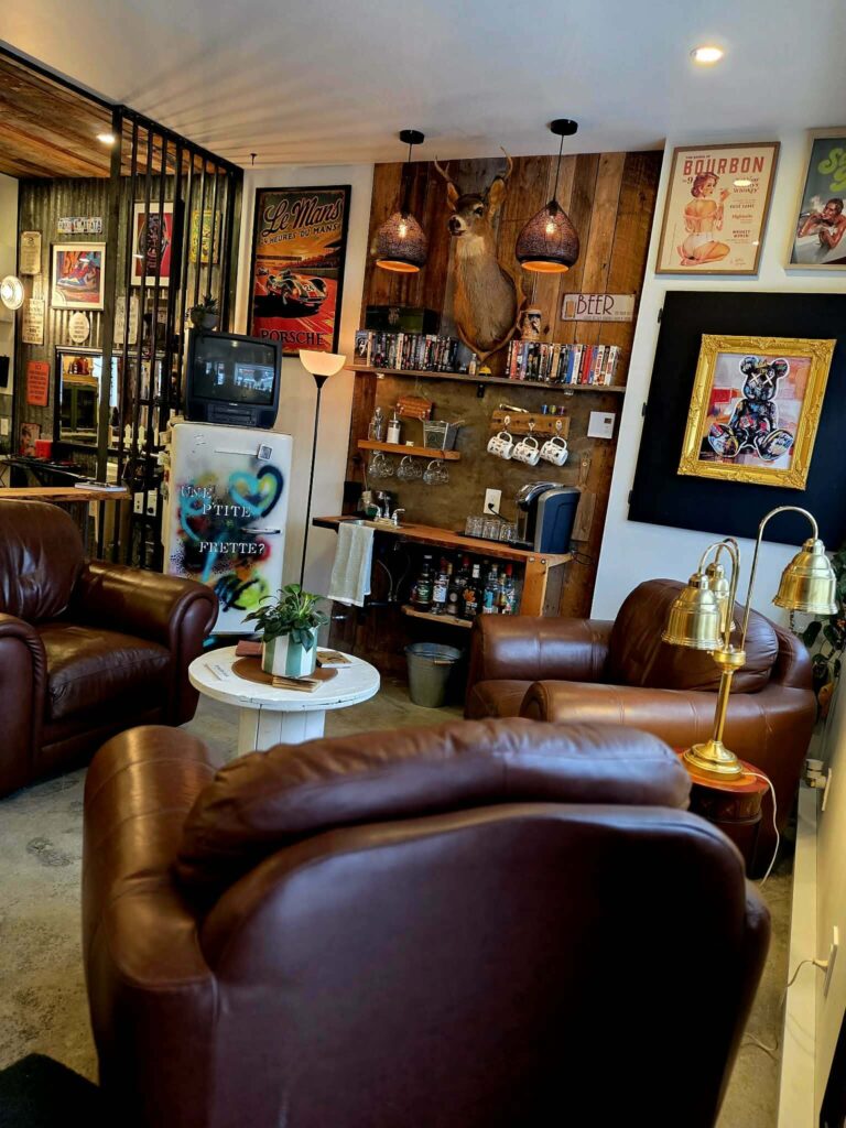 On est un salon de barbier à Sherbrooke, pis pas n’importe quel salon, c’est le QG des niaiseries de la région! On ne se prend pas au sérieux, pis on te le dit, venir chez BarbArt, c’est comme un show de stand-up, mais sans le talent , y s’en passe des affaires! En plus on te fait une coupe de cheveux, une taille de barbe, pis un rasage à la serviette chaude, comme dans l’temps! Qu’est-ce que tu veux de plus?